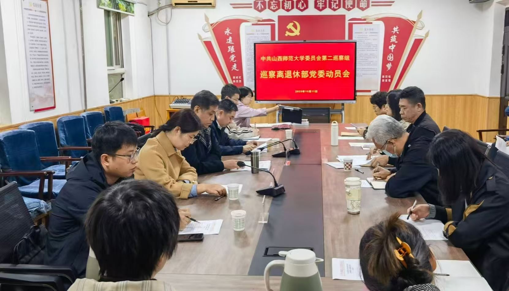 10月11日上午,中共山西师范大学委员会第二巡察组巡察离退休人员管理部党委动员大会在离退休部会议室召开。校党委巡察工作领导小组成员、纪委副书记吴建军,校党委巡察办综合科副科长王奇,第二巡察组组长郭飞,副组长李莉静以及巡察组成员出席了动员大会。离退休人员管理部全体工作人员参加了会议,会议由部党委书记、部长亢健主持。